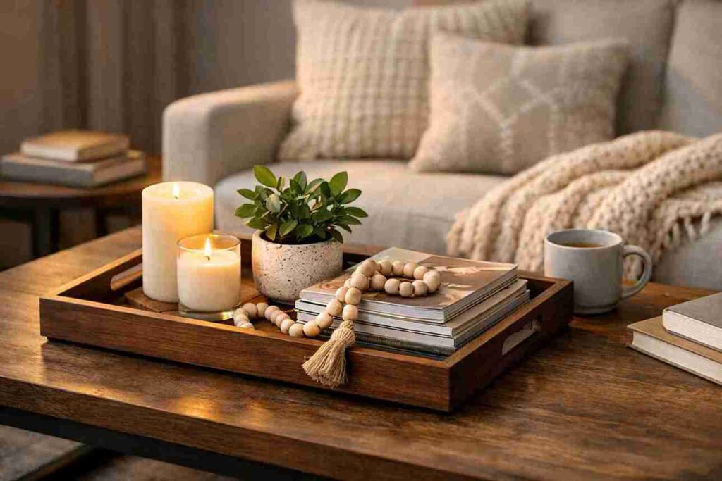 Refresh a wooden tray with paint or stain, add decorative handles, and use it to organize items like candles, magazines, or remotes. This instantly enhances your living room and keeps clutter under control.