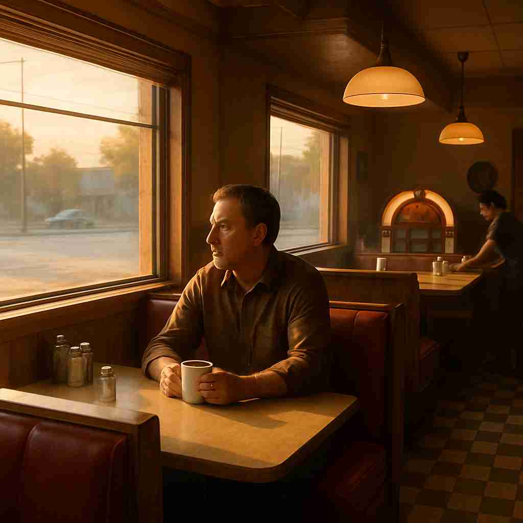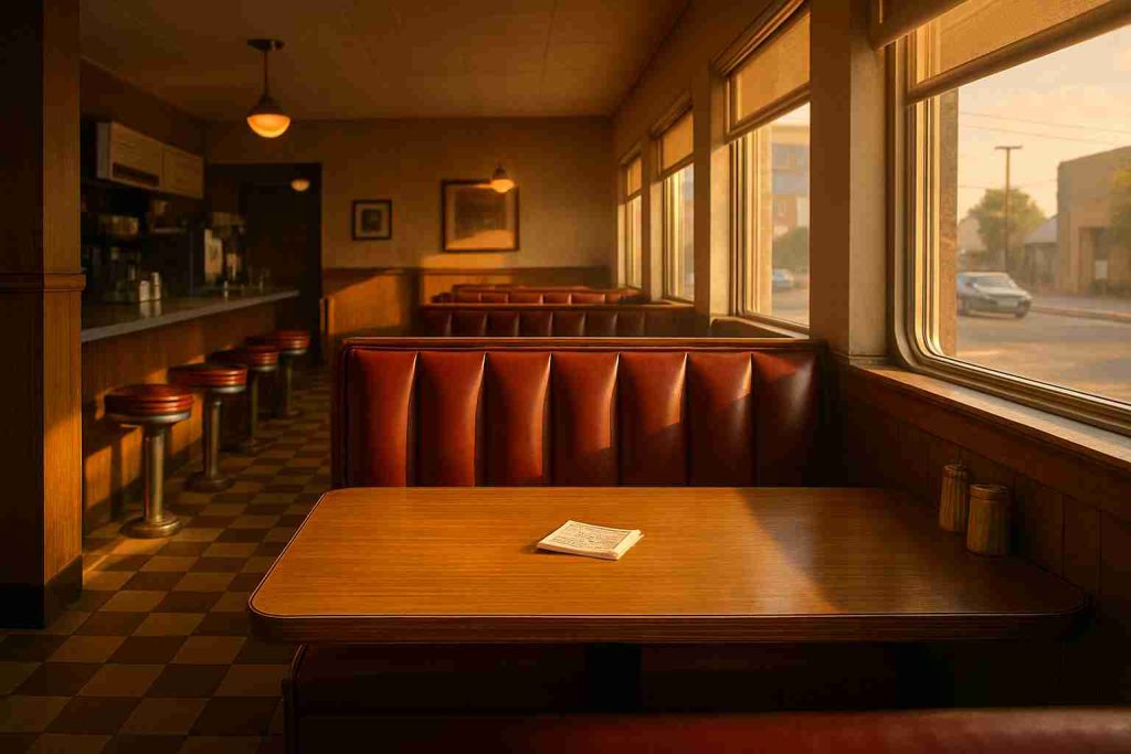 I still work Sundays at Denny’s. The light still falls through the blinds the same way. The regulars still come in with their stories and habits. But the third booth by the window is different now. It sits empty most days, and when I pass it, I pause.