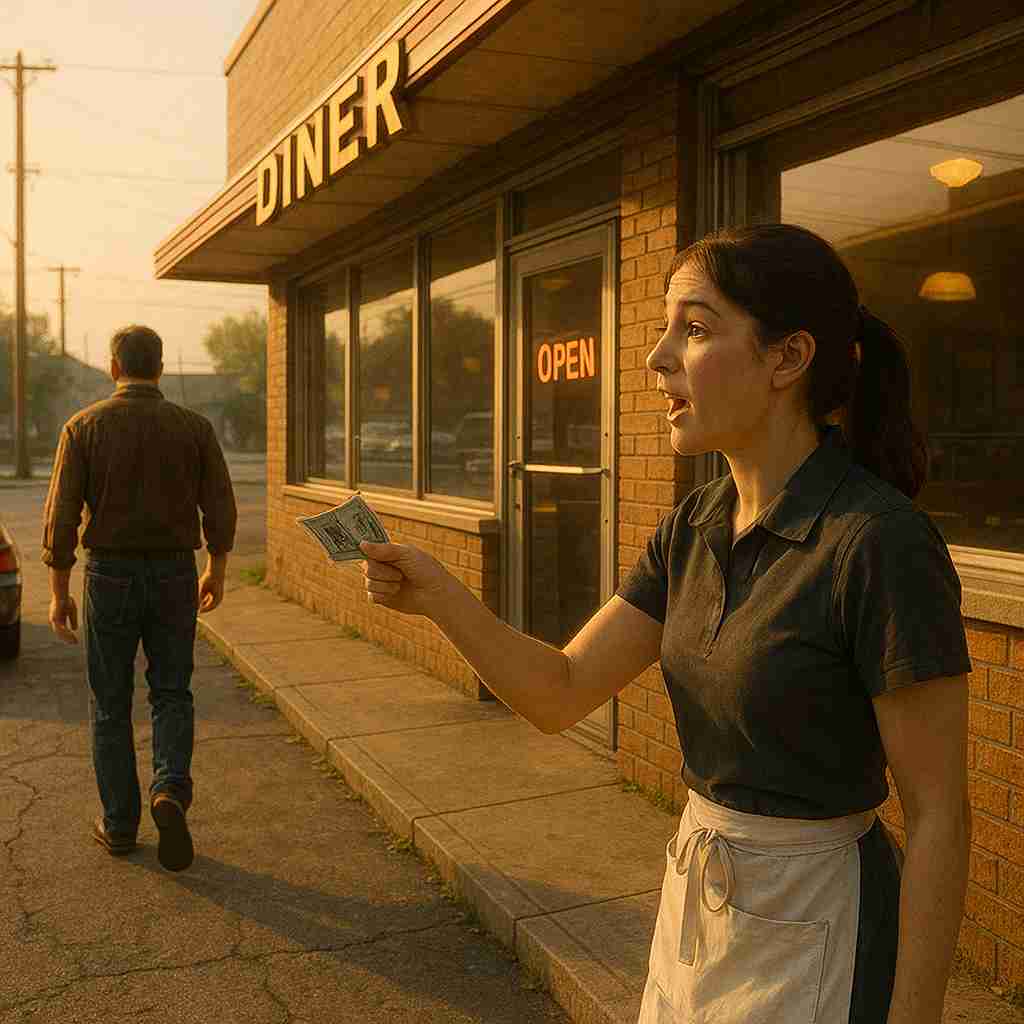 I’ve worked at Denny’s for two years. It’s not fancy, but it’s steady. The clatter of plates, the smell of fresh coffee, and the little bell above the door make me feel grounded. I love quiet Sunday mornings most of all. Sunlight slides through the blinds, making stripes across the tables, and our regulars walk in one by one like clockwork.