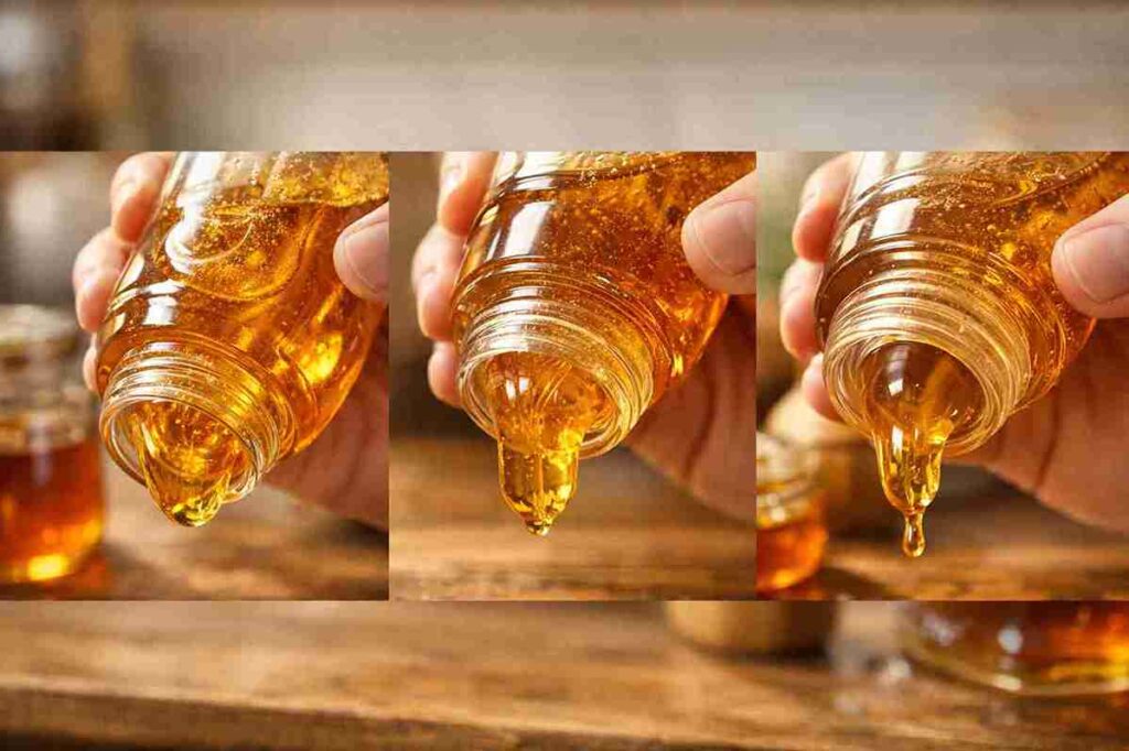 The idea behind the “bottle flip” test comes from the natural thickness of honey. Pure honey is usually dense and sticky, so it tends to move slowly when the bottle is turned upside down.