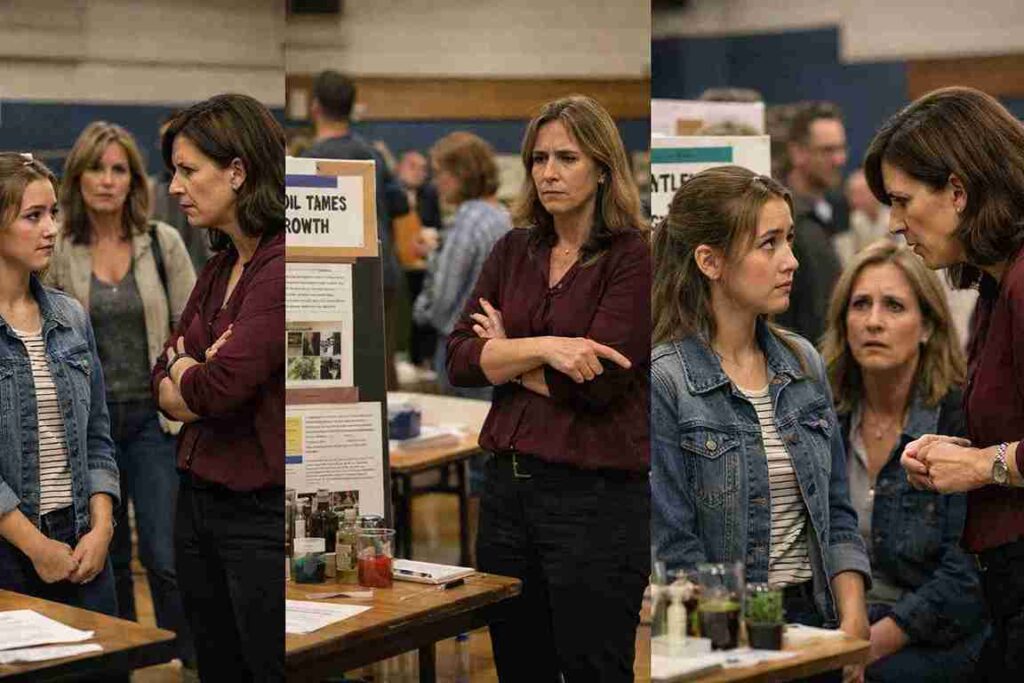However, tension resurfaced during the school’s science presentation night, where families were invited to observe student projects. Lizzie had spent weeks preparing, practicing her explanations, and organizing her materials. Her presentation was well received, and several parents praised her work.