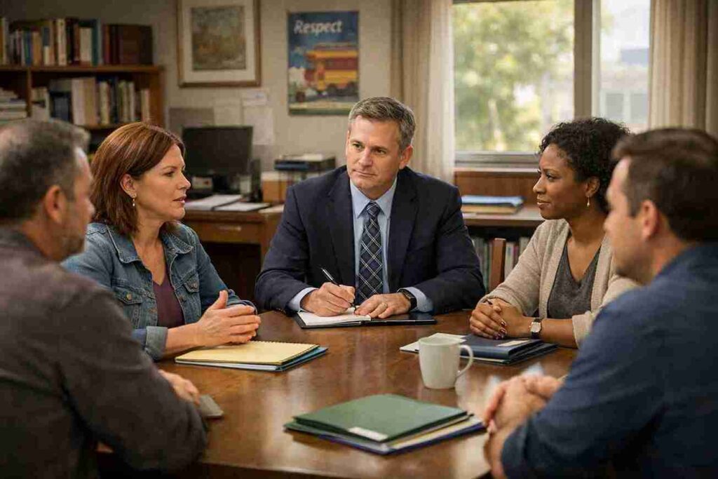 Choosing to stay calm, the mother voiced her concerns about fairness and respectful communication. Other parents shared similar observations, noting uneven treatment among students. The principal intervened and confirmed that the situation would be formally reviewed.