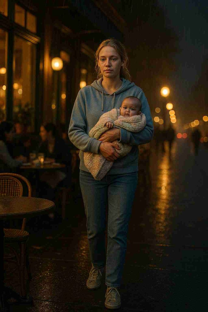 As David sipped the last of his tea, a young woman approached the café’s outdoor seating area. She moved slowly, carefully, as though carrying something precious — and she was. In her arms, wrapped in a hand-knitted blanket, rested a tiny baby.