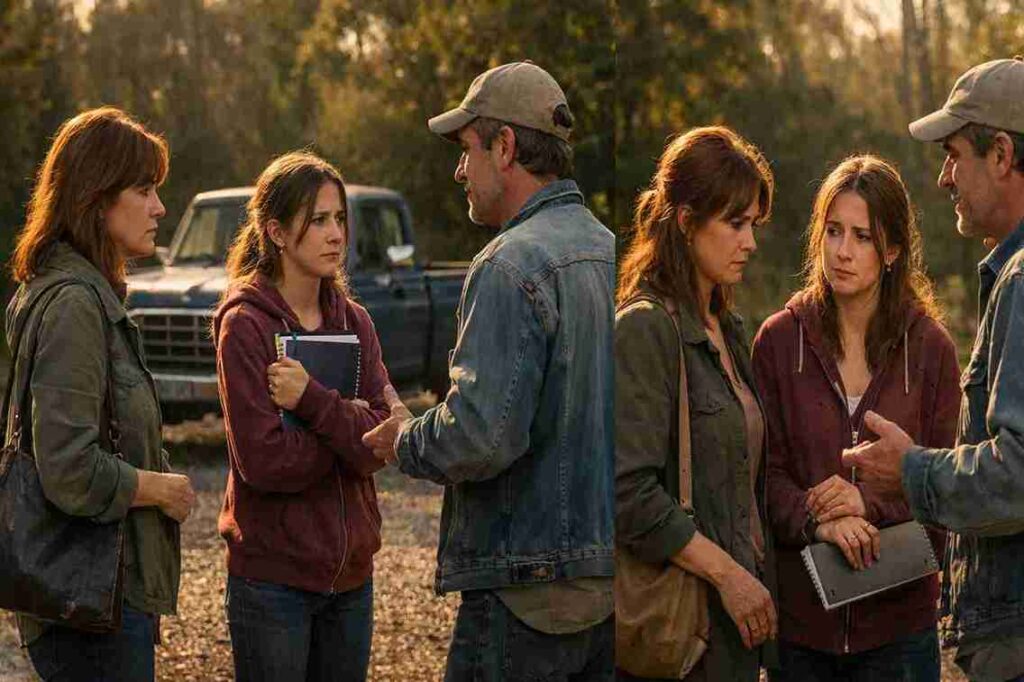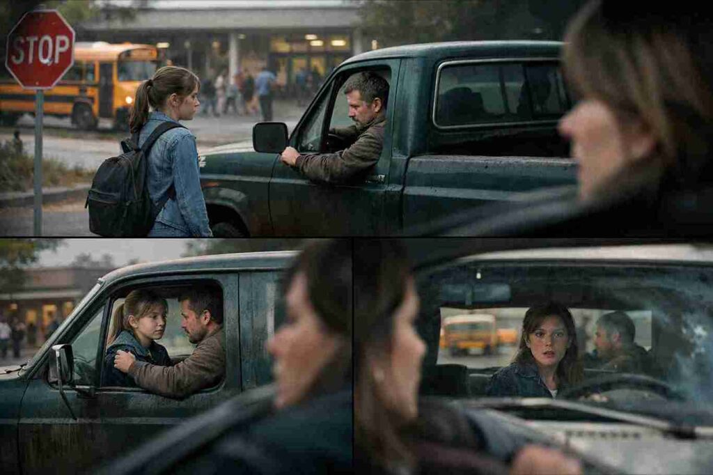 Moments later, an older pickup truck pulled up. My heart dropped when I recognized the driver — her father, Mark. Emily climbed in without hesitation, as if this had been happening for days. Confused and anxious, I followed them to a quiet gravel lot. The moment she saw me approach, her expression shifted sharply. The air grew thick with tension.