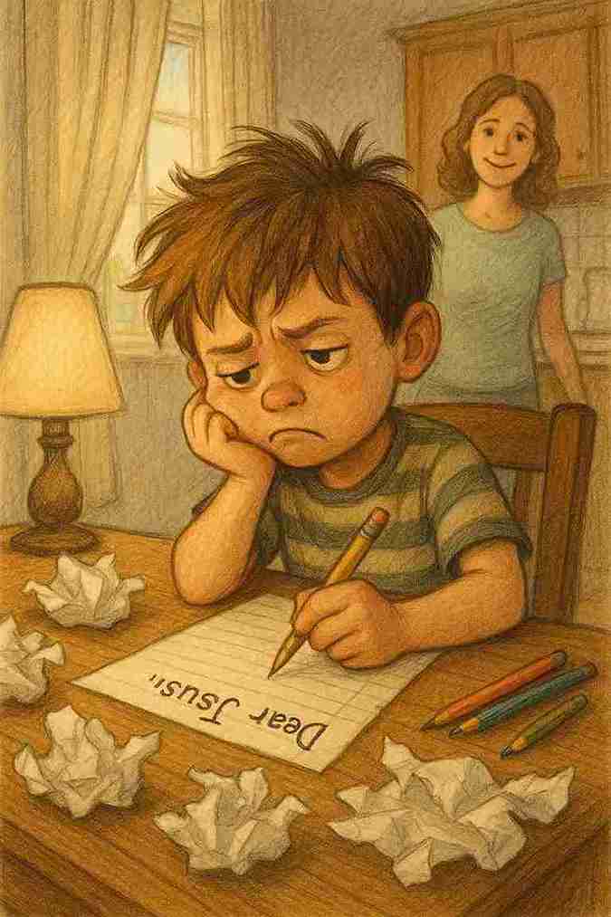 The boy eagerly sat down with pen and paper. His first attempt said, “Dear Jesus, I promise to be good for one whole year.” He frowned. That was far too long. He tore it up.