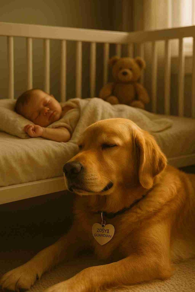 That night, Beau slept peacefully beside Zoey’s crib, his head resting on his paws, eyes calm for the first time in weeks. We bought him a silver tag the next day engraved with the words: “Zoey’s Guardian.”