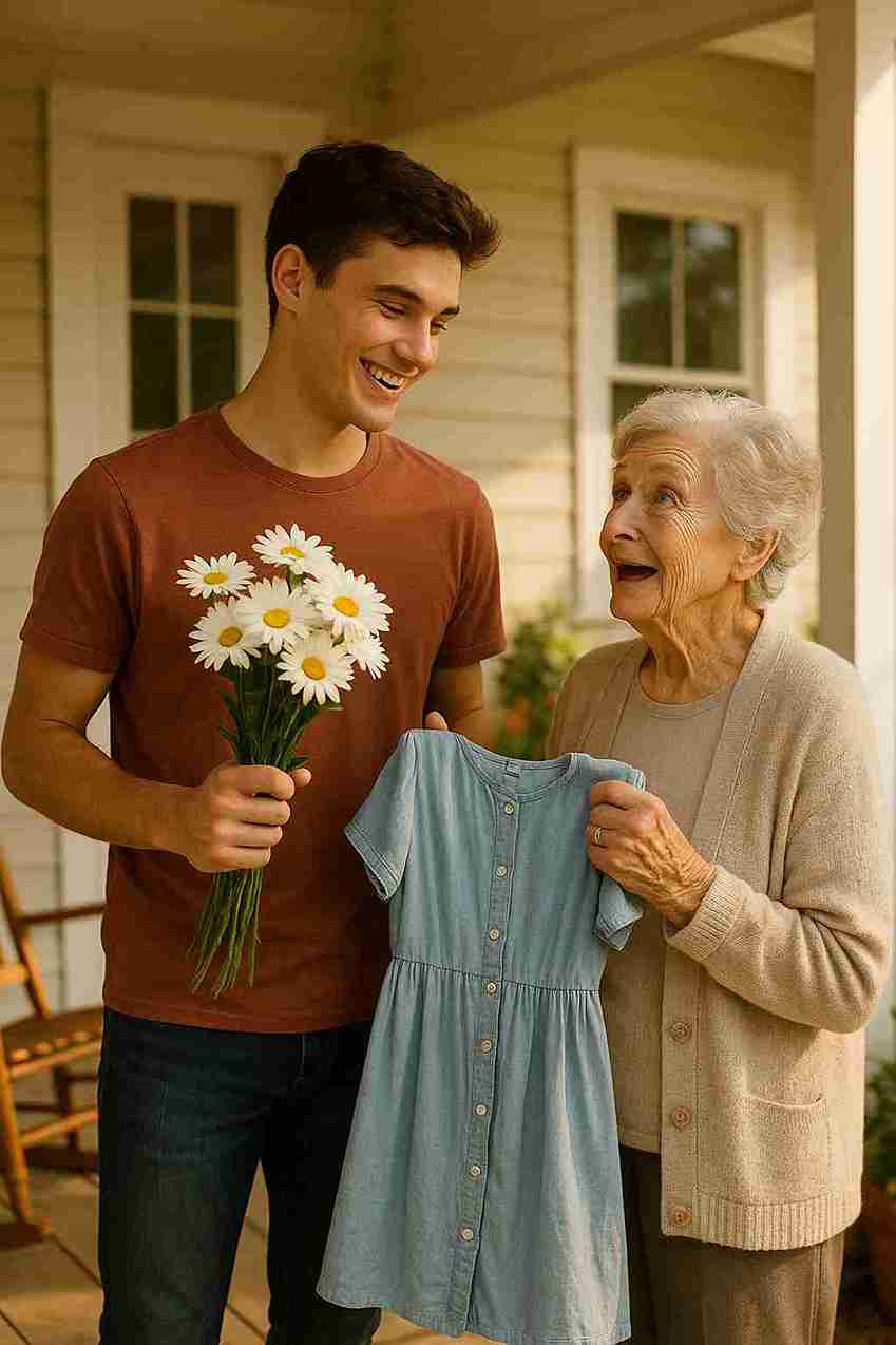 One bright morning, Jake arrived at her home with a bouquet of daisies—Margaret’s favorite flowers—and a soft blue dress she had once worn in a treasured old photograph. “For one last adventure,” he said with a gentle smile, helping her into the car. Her face lit up with joy, a sparkle in her eyes that illness had long dimmed.