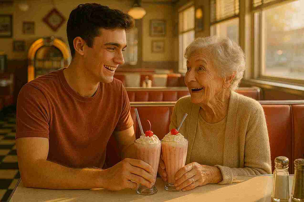 The first stop on their day together was the old diner where she had met Jake’s grandfather many years ago. They sat in the same red booth, just like she had back then. Over strawberry milkshakes, they shared stories—about her first date, the laugh that made her fall in love, and the old song that was playing when she knew she’d say yes to forever. Laughter echoed between them, bringing the past alive in the sweetest way.