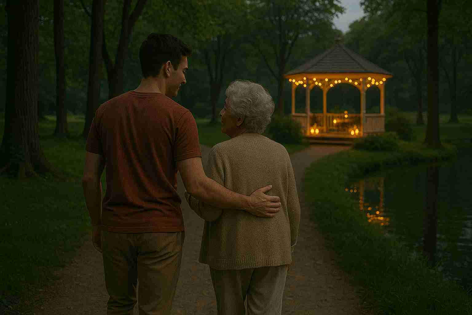After lunch, Jake took her to a nearby park where they used to feed ducks when he was little. But something felt different this time. As they approached the gazebo in the center, Margaret suddenly stopped.