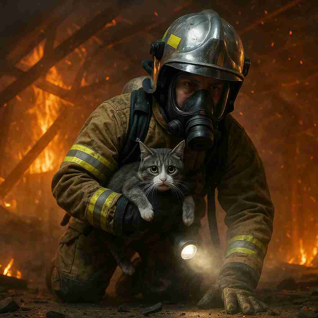 Lieutenant Mark Dervishi was the first to push through the north entrance. The heat was intense, his mask fogged, and the rafters creaked above him. As he crawled low, flashlight in hand, he expected silence—just fire and collapsing wood. Instead, he heard a faint, desperate sound. Not human. A soft, panicked cry. A meow.