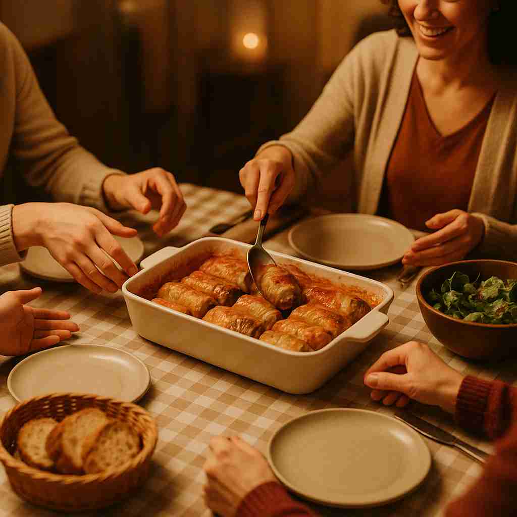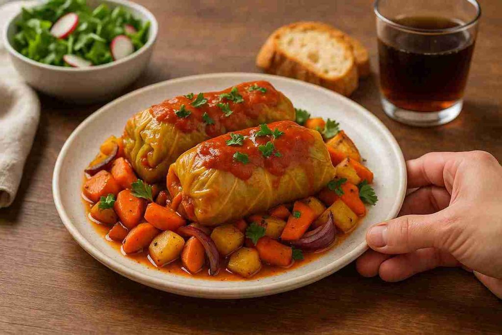 Let the dish rest for a few minutes before serving — this helps everything set and makes it easier to serve neatly. Scoop up each cabbage roll with a generous spoonful of roasted vegetables and sauce. Pair with a slice of crusty bread or a fresh garden salad for a wholesome meal that satisfies every craving.