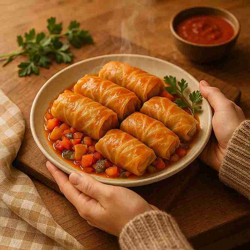 Whether you’re cooking for a cozy family dinner, preparing make-ahead meals, or simply craving something hearty and nourishing, these Stuffed Cabbage Rolls on a Vegetable Bed bring comfort, balance, and satisfaction in one beautiful dish. Each bite delivers the perfect mix of tender cabbage, flavorful filling, and roasted veggie sweetness — a true hug on a plate.