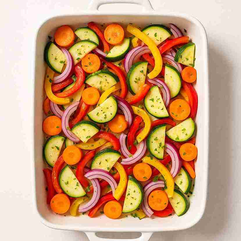 In a separate bowl, toss the carrots, zucchini, bell pepper, and onion with olive oil and your favorite seasonings. Spread them evenly across the bottom of your prepared baking dish. This colorful layer adds natural sweetness and keeps the rolls moist as they bake.