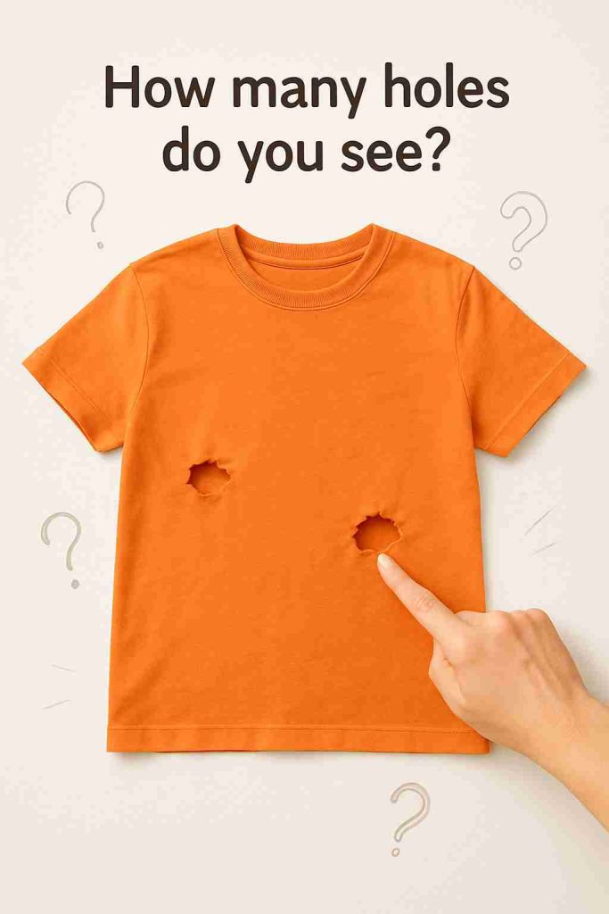 A simple picture of an orange T-shirt has become a viral online puzzle. At first, it looks like nothing more than a shirt with a few rips, but this fun little brain teaser has left millions debating. The challenge is straightforward: “How many holes do you see — 2, 4, 6, or 8?” What makes it fascinating is not just the answer, but how differently people think when solving it. It’s a lighthearted test that reveals how our minds define things we usually take for granted.