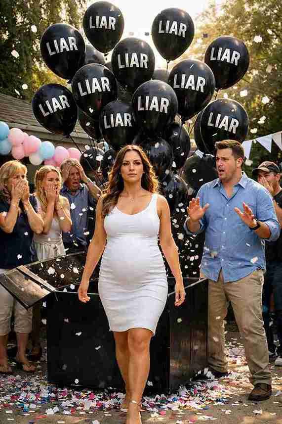 So instead, I gathered screenshots of every message, every photo, every detail. Then I placed one final order at a party supply shop—a large reveal box filled not with pink or blue, but with black balloons. Each balloon had a single word printed in silver: “LIAR.”