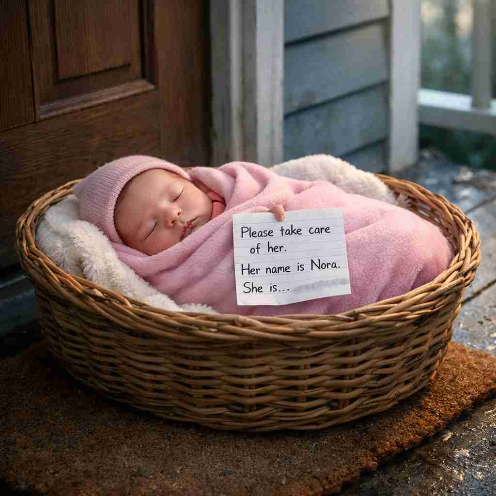 On the sixth day, I opened my front door and felt my heart drop. A wicker basket sat on my porch. Inside was Nora, wrapped in her pink hospital blanket, sleeping peacefully. A note in Claire’s handwriting was pinned to it: