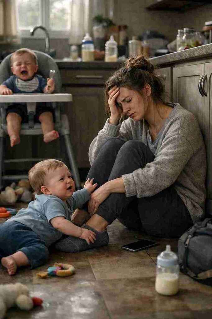 One Tuesday morning, everything fell apart. I found myself sitting on the cold kitchen floor, completely overwhelmed. One baby cried for a bottle while the other banged a spoon against his high chair, adding to the chaos. I called Mark, sobbing, and admitted what I had been trying to hide—I was drowning.