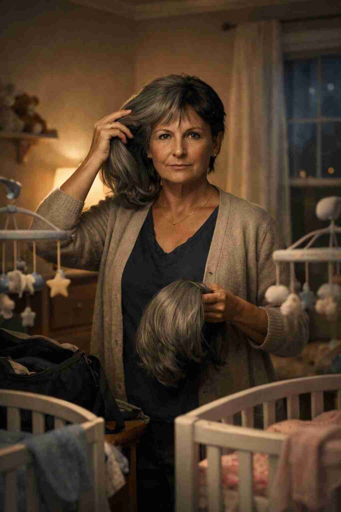 Mrs. Higgins stood in the nursery and slowly lifted her hair—revealing short, dark hair underneath. She wiped away the makeup that had given her a soft, aged look. In seconds, the woman on the screen looked nothing like the sixty-year-old babysitter I had hired.