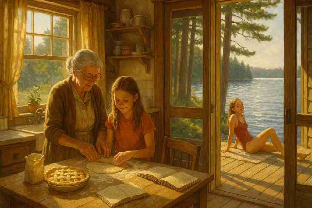 Baking rhubarb pie with Grandma — the heart of my lake house memories.