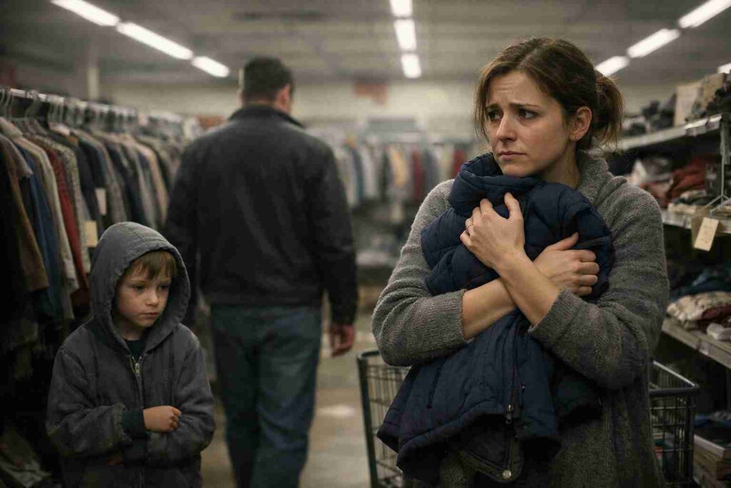 I never expected to find myself crying in the middle of a Goodwill aisle, holding a worn navy coat like it was the only thing that could protect my child. Our son, Liam, desperately needed something warm. His thin hoodie did nothing against the freezing weather, and the sleeves had frayed into long, tired strings. I begged Mark to let me buy the coat. “Please, Mark. Just look at him,” I whispered, hoping he would understand the urgency. But he wouldn’t. He pushed the coat back onto the rack and said quietly, “Put it back. We’re broke. We make do.” Then he walked away without another word.