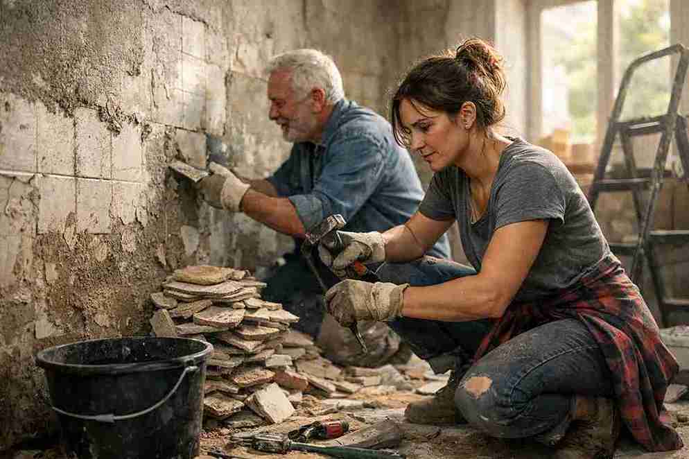 We ended up removing more tiles than expected, and while cleaning them, I accidentally damaged one tile while trying to remove old adhesive.