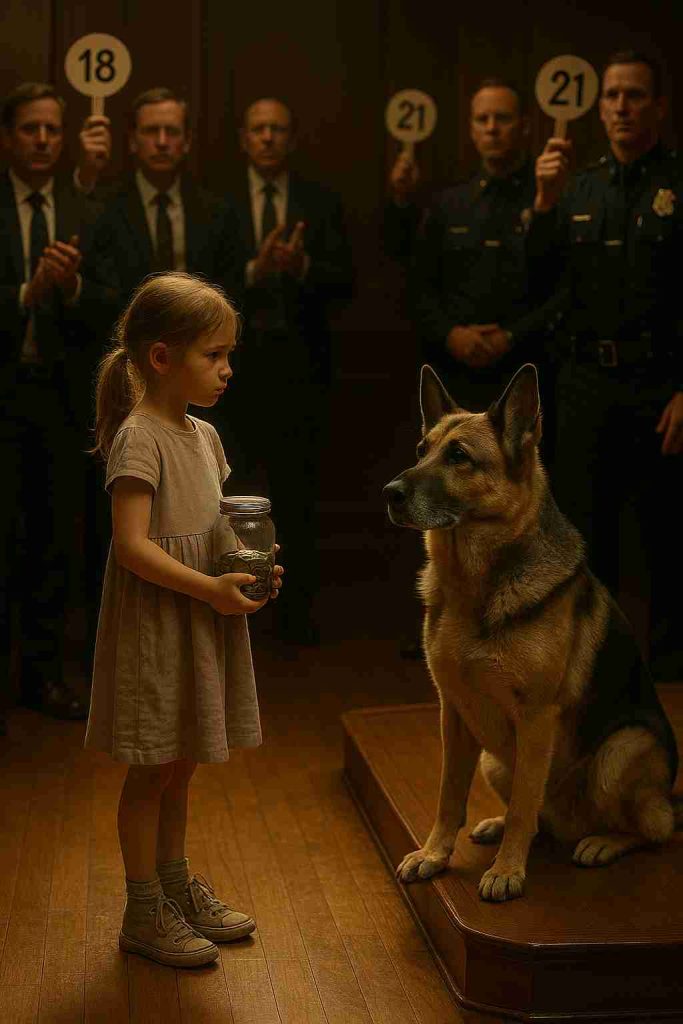 From the moment Lily walked into the crowded police dog auction, clutching a jar full of coins, her purpose was clear. She wasn’t there to watch or wander — she was there for one reason: to bring home Max, the retired K9 who had once worked beside her late mother, Officer Hannah Parker. For Lily, this wasn’t just an auction. It was a mission of love, loyalty, and remembrance — her final connection to the mother she had lost.