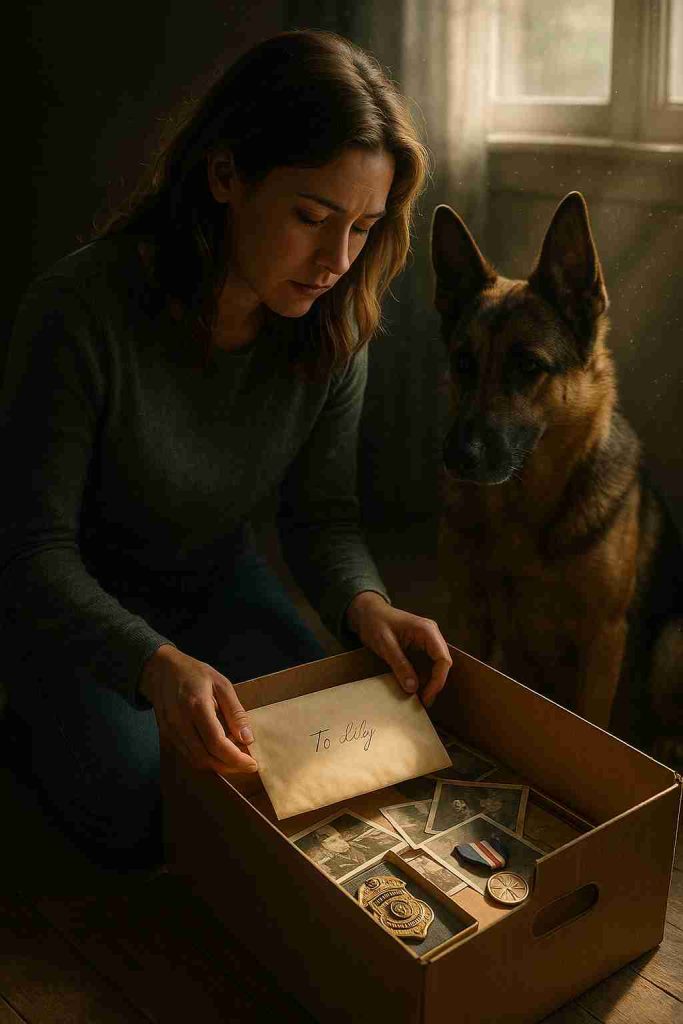 One day, while home early from school, Lily noticed Max sitting in front of the closet, his eyes fixed on the door. She opened it and found an old cardboard box on the top shelf — her mother’s memory box. Inside were photos, medals, and a letter addressed to her.