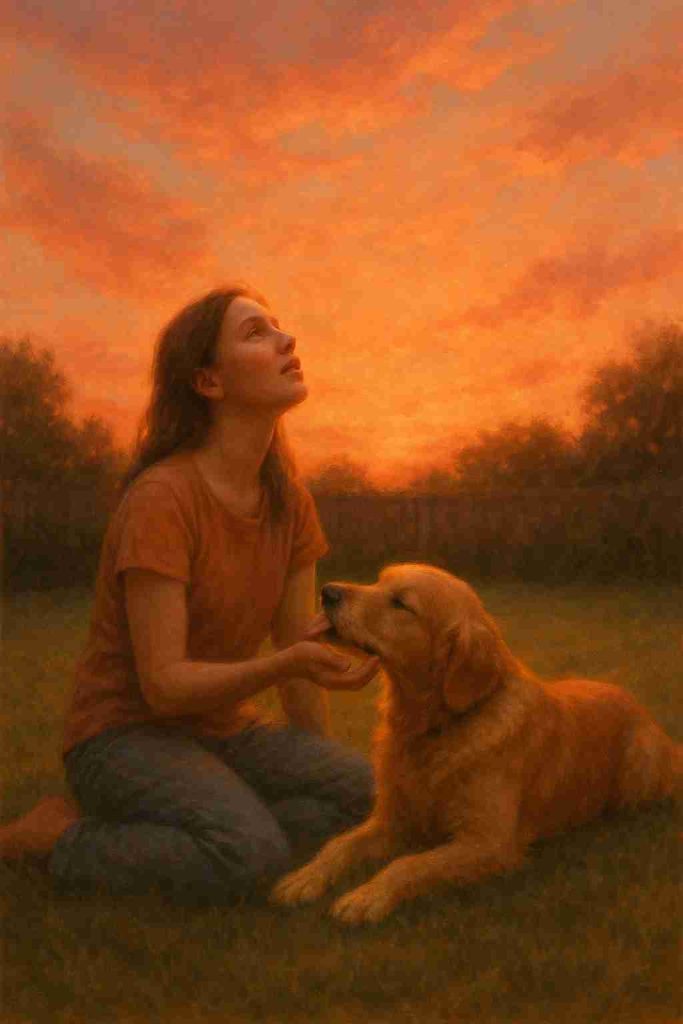 One evening, Lily sat in the backyard, Max resting peacefully by her side. She looked up at the sky and whispered, “Do you think she sees us?” Max lifted his head and licked her hand. To Lily, that was the answer she needed.