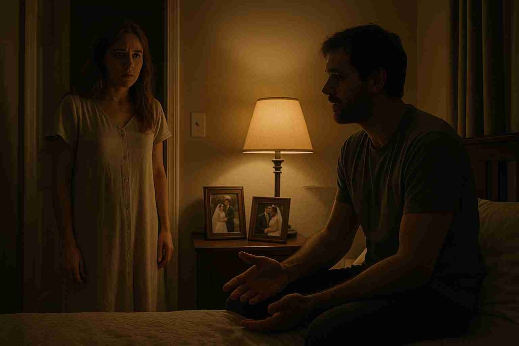 Later that night, after the guests had gone and the lights had dimmed, Amber changed into something comfortable, expecting a quiet and romantic evening. But as she stepped into their bedroom, she froze. Steve was sitting on the edge of the bed, speaking softly — but to no one she could see.