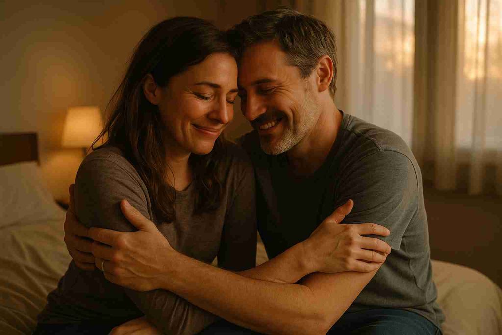 In that quiet, tender moment, the new couple held each other close. The night wasn’t what Amber had imagined — no candlelit perfection or fairytale glow — but it was real. She realized that love isn’t about flawless beginnings. It’s about choosing each other, even with all the pain and history they bring along.