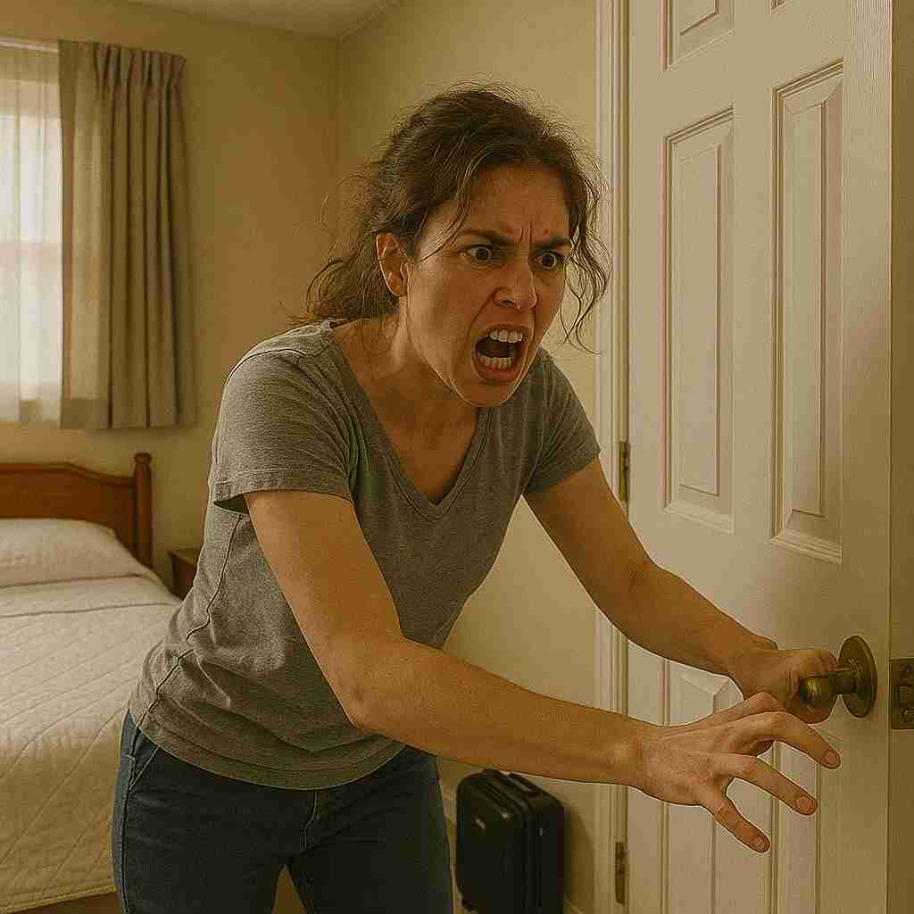 Me: Dana locked me in the guest room. No phone. No keys. Deadbolt.