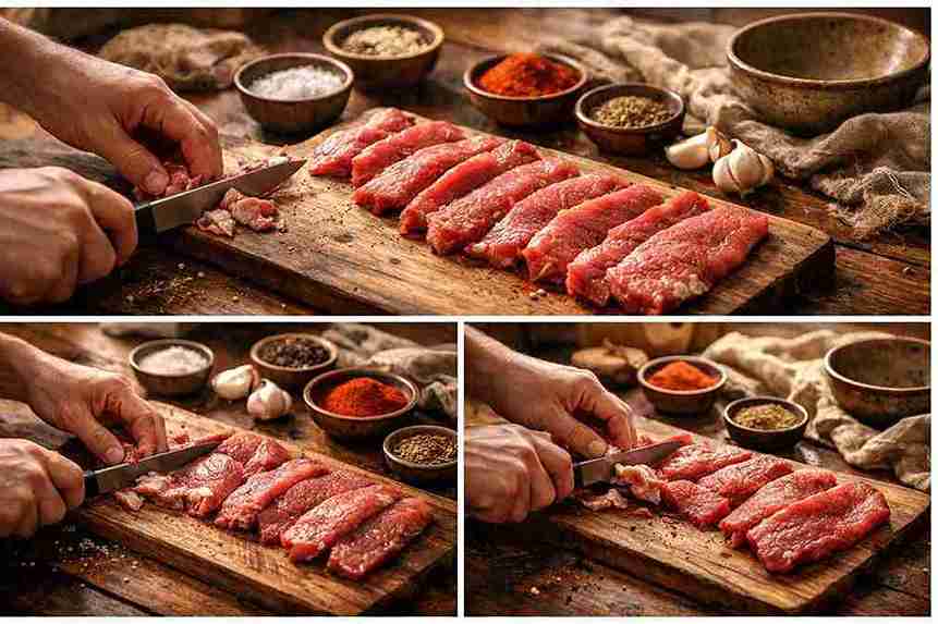• Traditional air-drying: Hang the meat in a clean, dry, well-ventilated place for several days.
