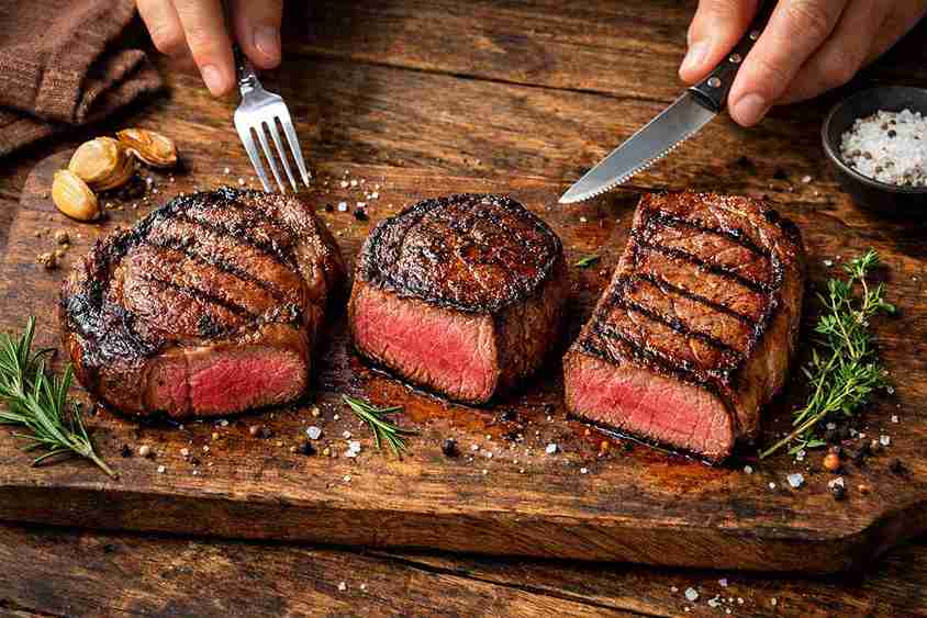 Filet mignon is famous for its tenderness and smooth texture.