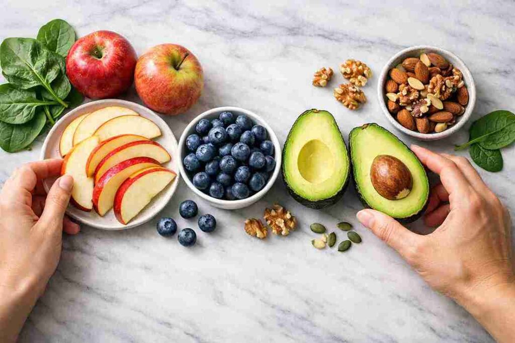 Blueberries, apples, and avocados are packed with nutrients that support liver health, blood sugar balance, and cholesterol control.
