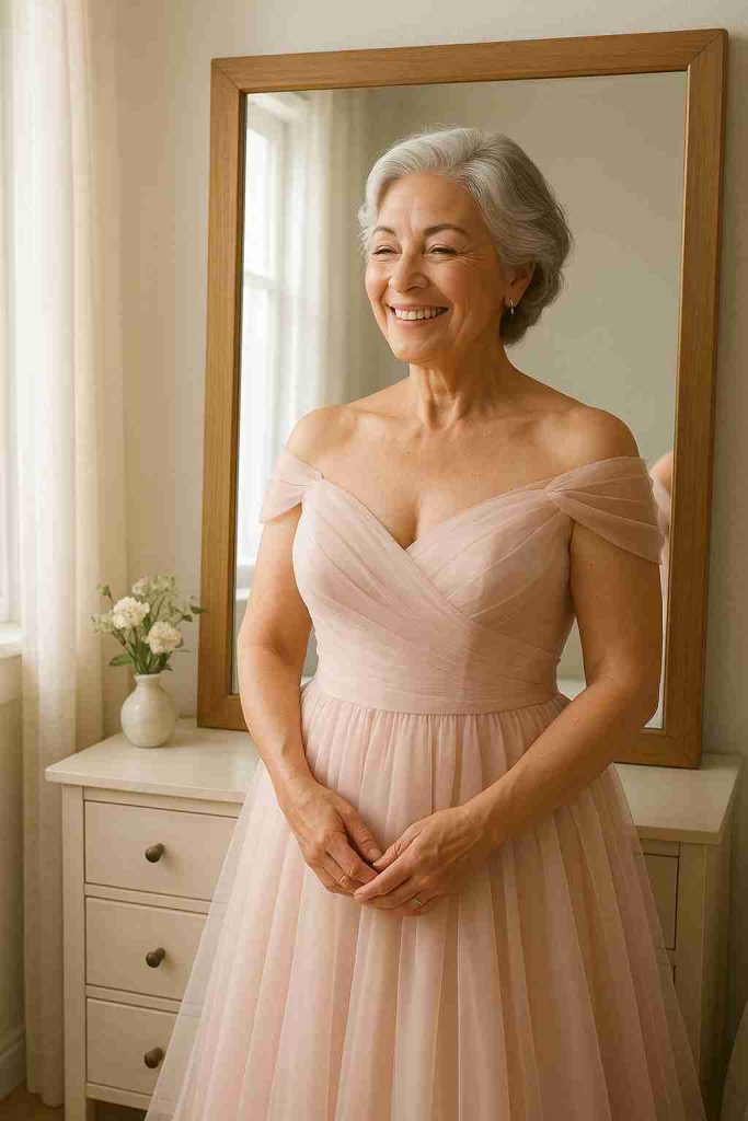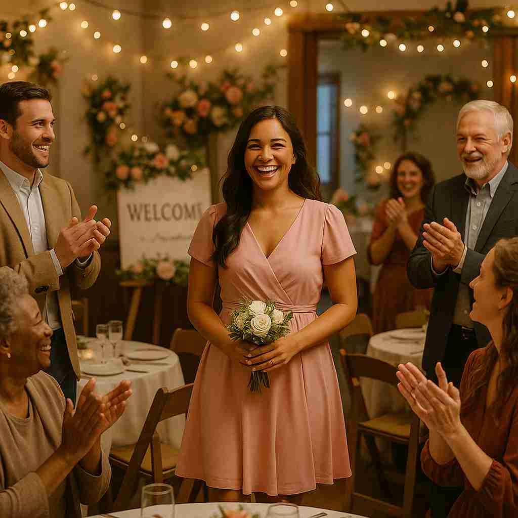 On the morning of the ceremony, I stood in front of the mirror feeling surprisingly calm. The dress fit perfectly, and for the first time in many years, I felt beautiful—truly and confidently beautiful. When we arrived at the community hall, guests greeted me warmly. Several people complimented the color, calling it lovely, soft, and unique. Their kind words eased my nerves.