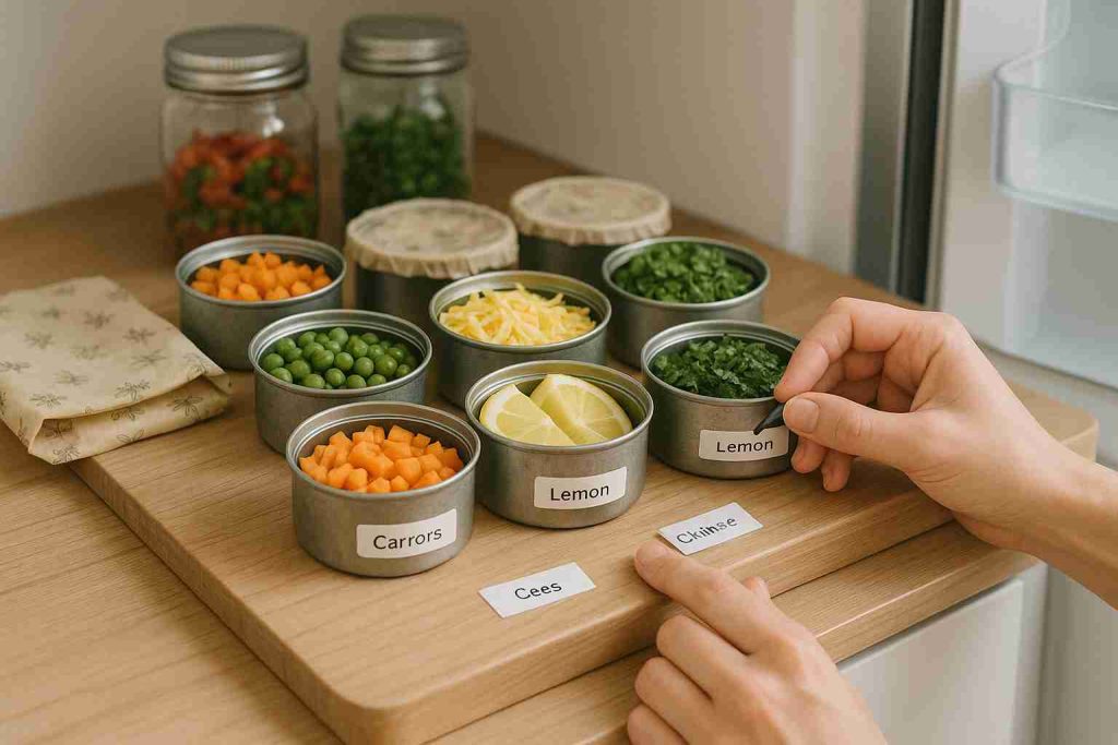 Tuna cans are the perfect size for small fridge items that often get lost or wasted. Try using them to store things like chopped herbs, diced vegetables, lemon slices, shredded cheese, or even leftover sauces. Cover each can with cling wrap, a reusable beeswax wrap, or a silicone lid to keep everything sealed and tidy.