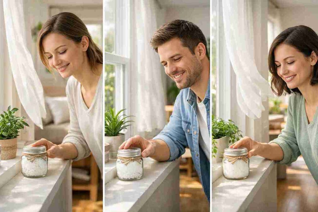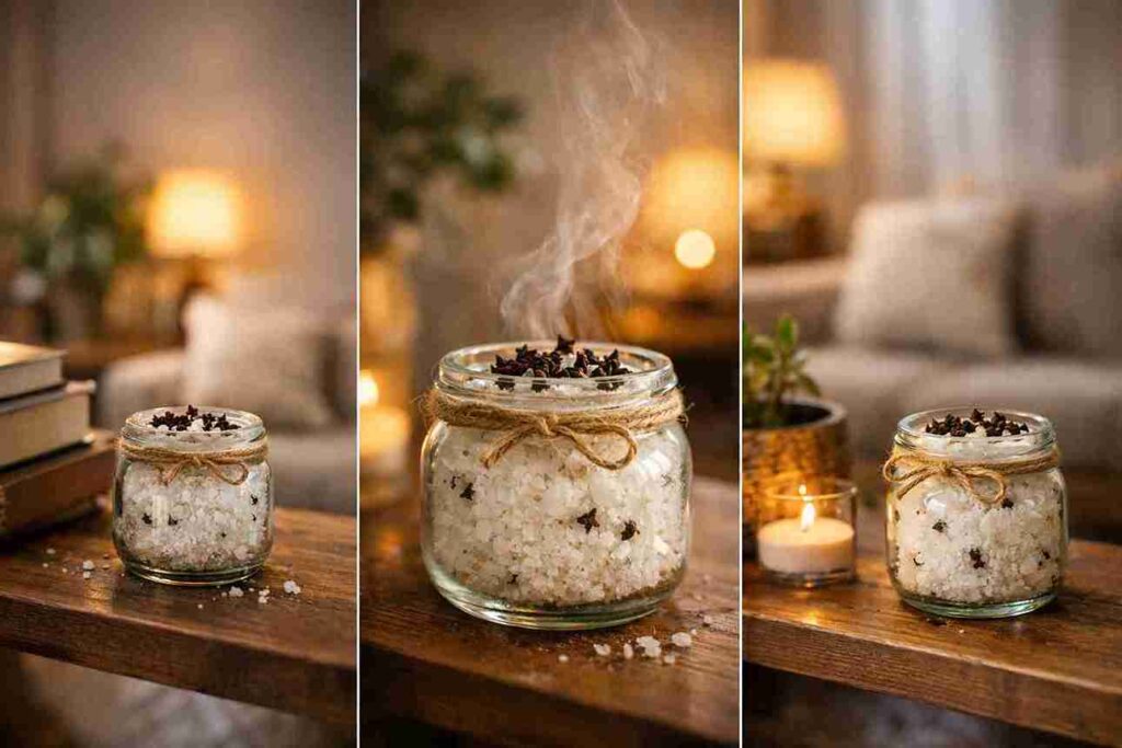 Once the mixture is ready, place the container somewhere with gentle airflow, such as an entryway table, a living room shelf, or near a window where air circulates naturally.