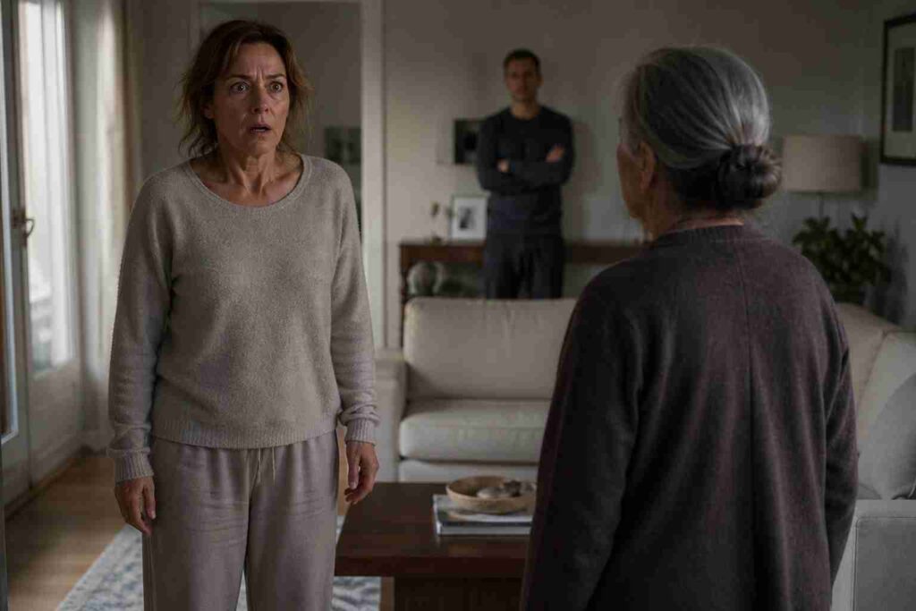 In the middle of our living room stood a woman.
