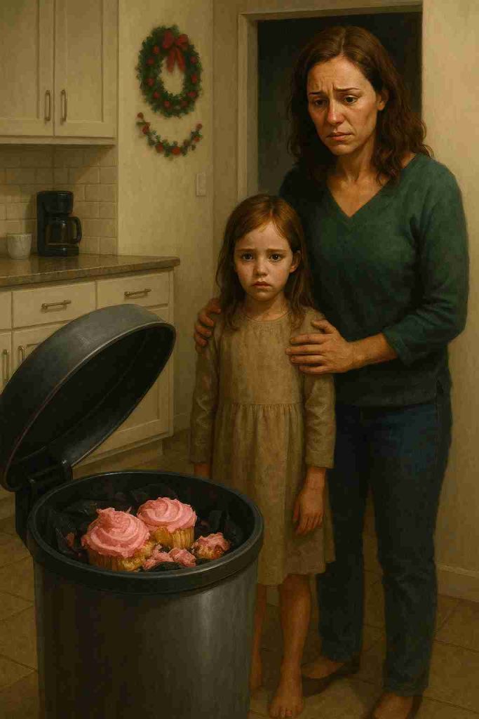 Inside it, I saw pink frosting smeared across a garbage bag, crushed cupcake liners, and crumbs. Every single cupcake had been thrown away. Not saved. Not even set aside politely.