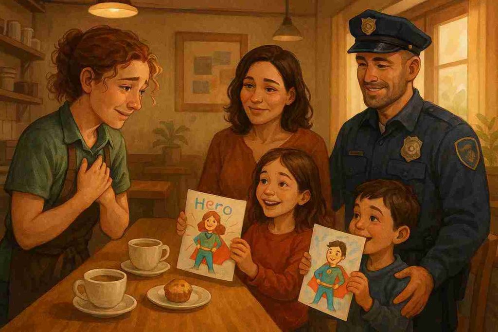 I followed the officer out, preparing myself for the worst. But instead of heading to a police car, he walked with me down Main Street to a small café I had passed many times. Inside, warmth and the smell of coffee wrapped around me.