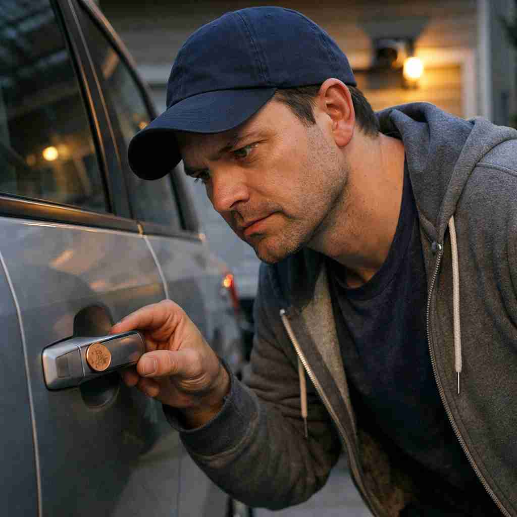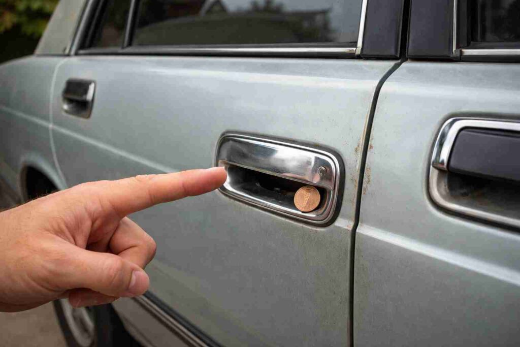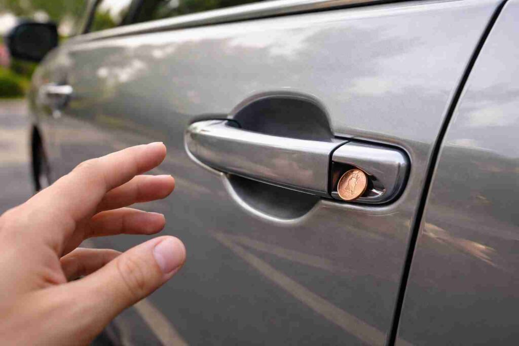 One popular theory floating around online suggests that placing a coin or similar object in a door handle can stop older car doors from locking completely. In older models with manual locking systems, this could theoretically create a small window for someone to open the door later. While this idea has been shared widely on social media, real cases of this happening are extremely rare. Modern cars use electronic locking systems that are not affected by this method at all, making the scenario even more unlikely.