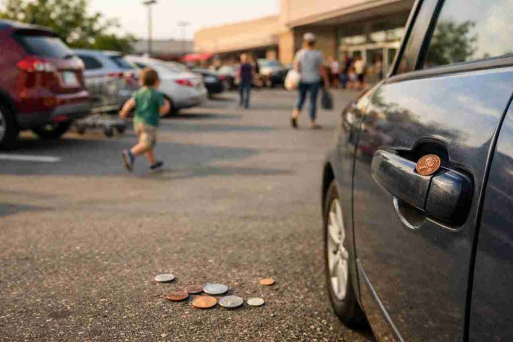 Still, it’s completely understandable to feel worried when you notice something unusual on your vehicle. In reality, a penny in a door handle often has a very ordinary explanation. Busy parking lots and driveways are full of activity—people drop loose change, kids play around cars, and sometimes objects simply fall or get pushed into unexpected places. What seems suspicious at first glance is more often just a random accident with no harmful intent behind it.